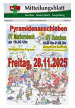 Das Mitteilungsblatt für öffentliche Bekanntmachungen und Mitteilungen der Gemeinde Raschau-Markersbach erscheint monatlich. Unternehmen, Institutionen und Vereine haben die Möglichkeit, Informationen zu veröffentlichen. Anzeigen, Veranstaltungshinweise und allgemeine Informationen runden das Angebot ab.